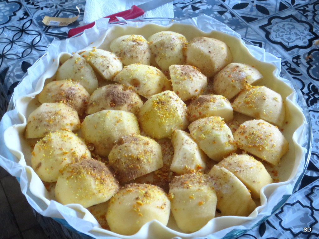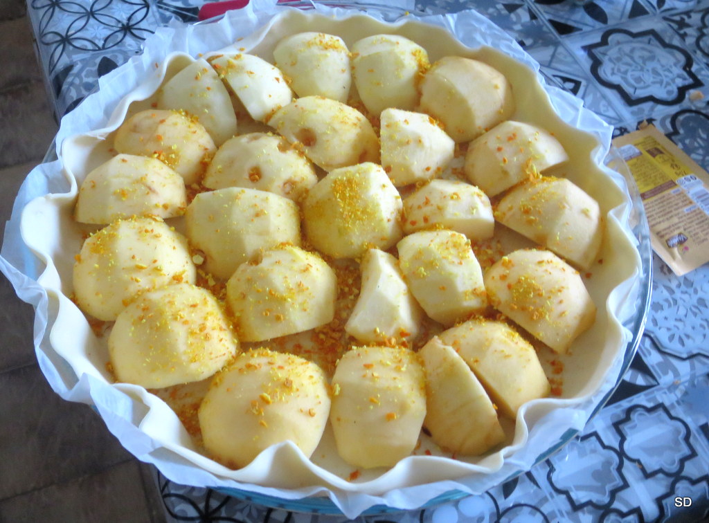 J’ai la chance de recevoir des oranges non traitées, je zeste finement la peau, sans trop entamer la partie blanche plus amère, et la met à sécher, trois ou quatre jours. Je mixe les zests et saupoudre les pommes.
