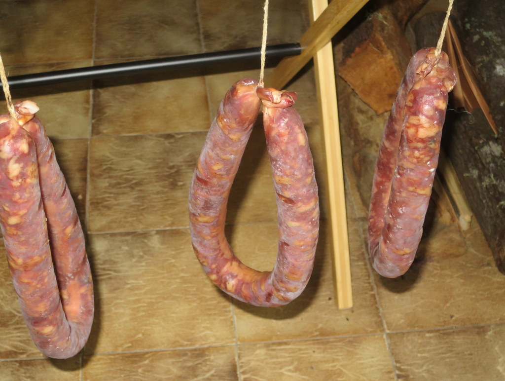 Je me souviens, dans la chaumière de mon enfance, lorsqu’on avait tué le cochon, la charcuterie pendait aux poutres et séchait à la chaleur de la cheminée.